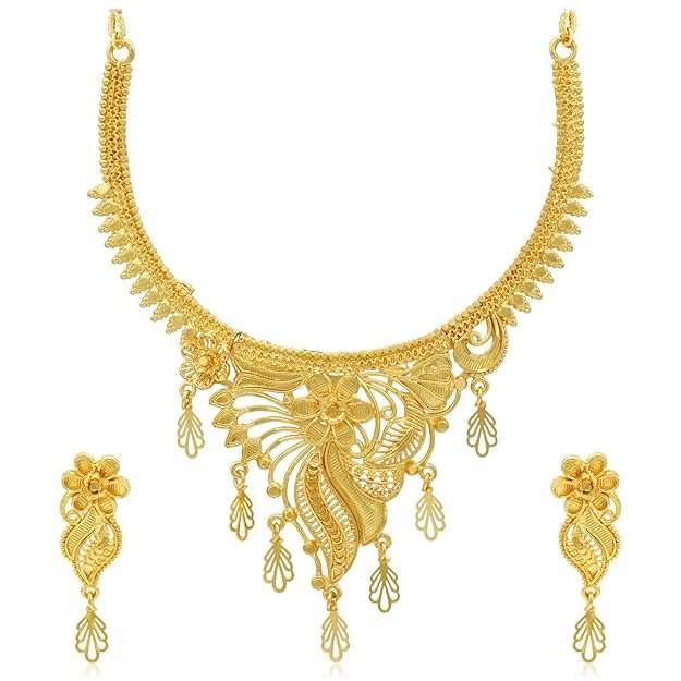 Lavish 24 Carat Gold Plated Floral Choker Necklace Set