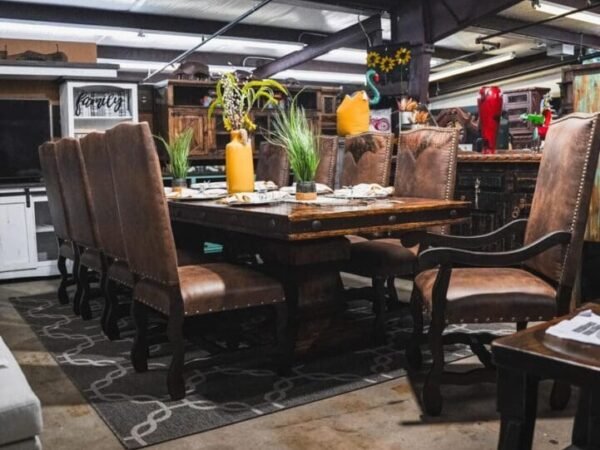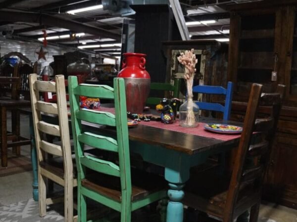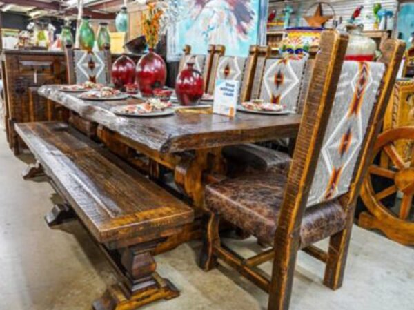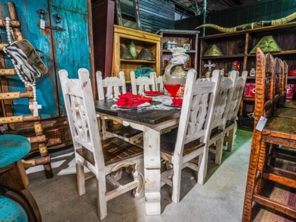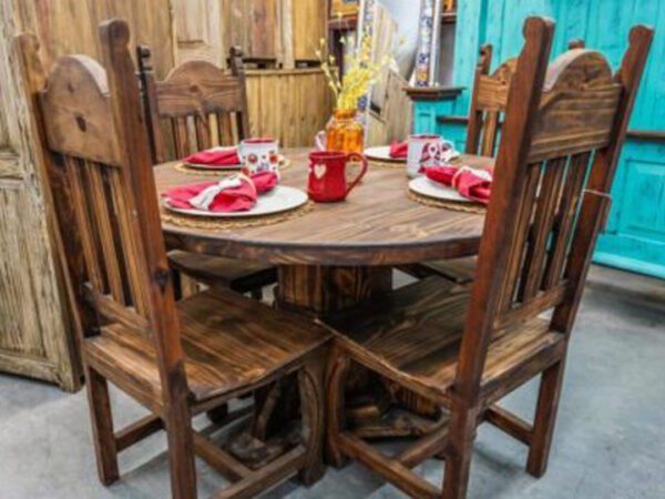 Experience the warmth and hospitality of the Ranchito Table, perfectly paired with 5 comfortable chairs. This exceptional dining set boasts a classic, rustic design with a warm, inviting finish.