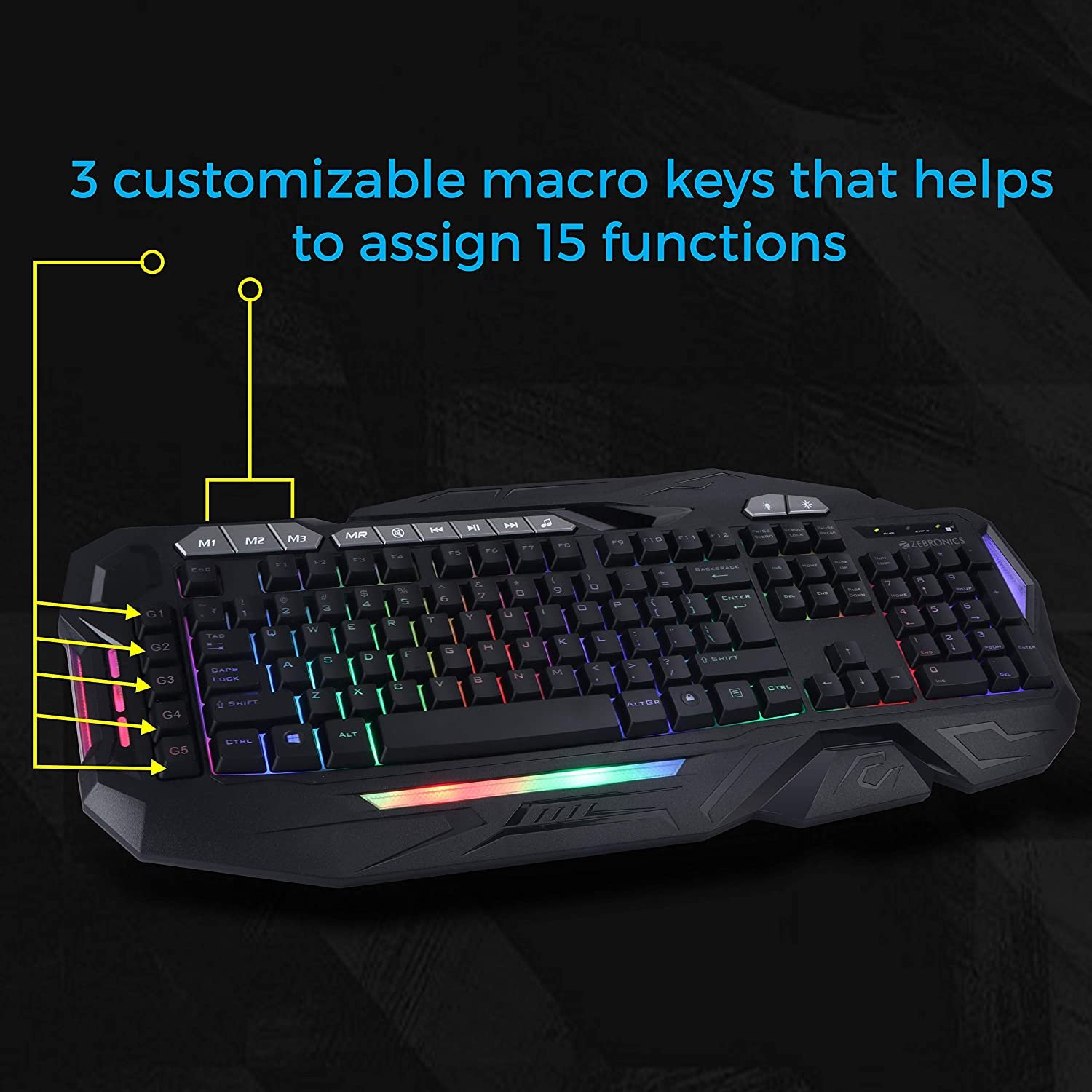 • Zeb-Magnus USB Gaming Keyboard with 4 Modes multicolor LED Lights