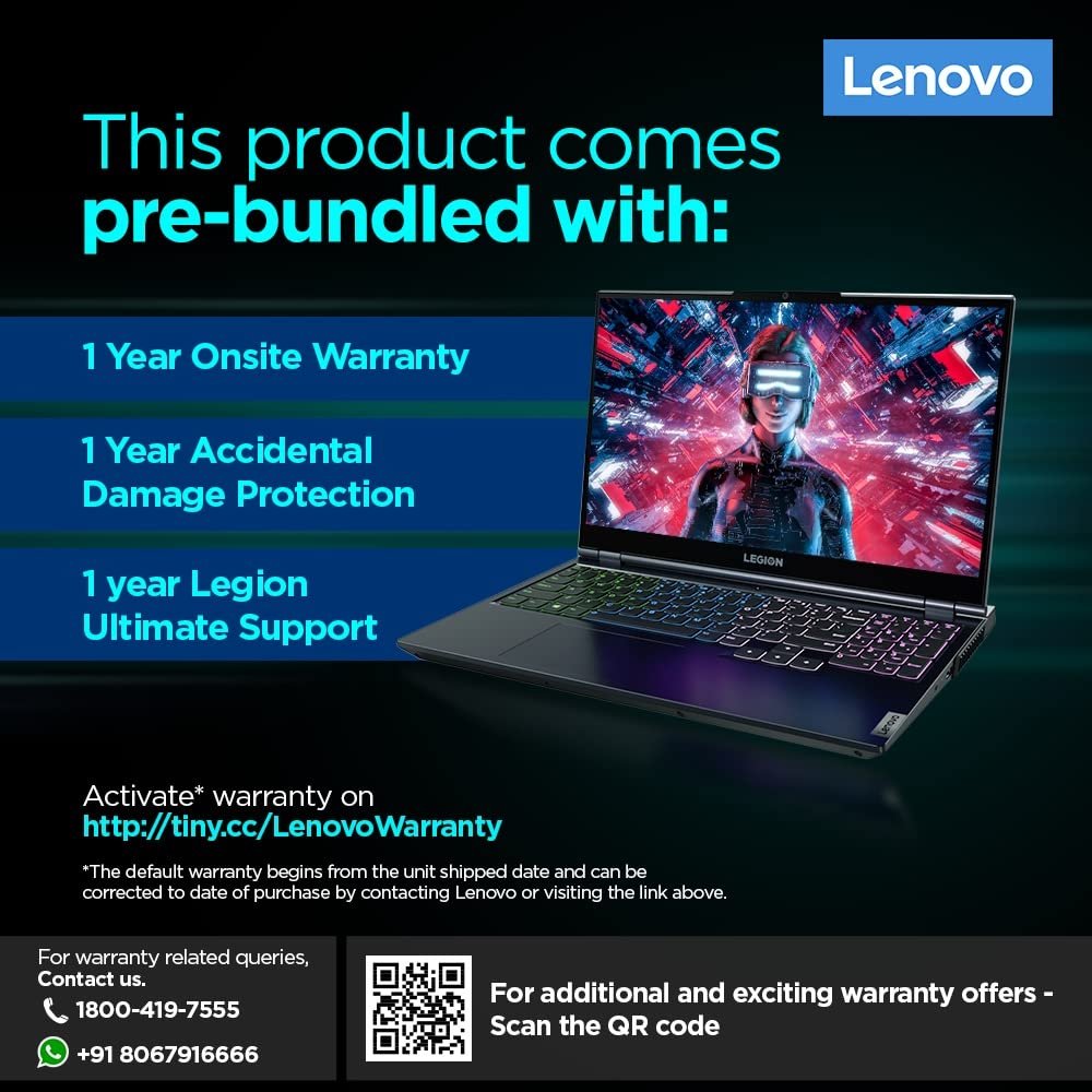 Lenovo Legion 5 Intel Core i7 11th Gen 15.6" (39.62cm) FHD IPS Gaming Laptop (16GB/512GB SSD/4GB NVIDIA RTX 3050/120Hz/Windows 11/Office 2021/Backlit/3months Game Pass/Phantom Blue/2.4Kg), 82JK00GCIN