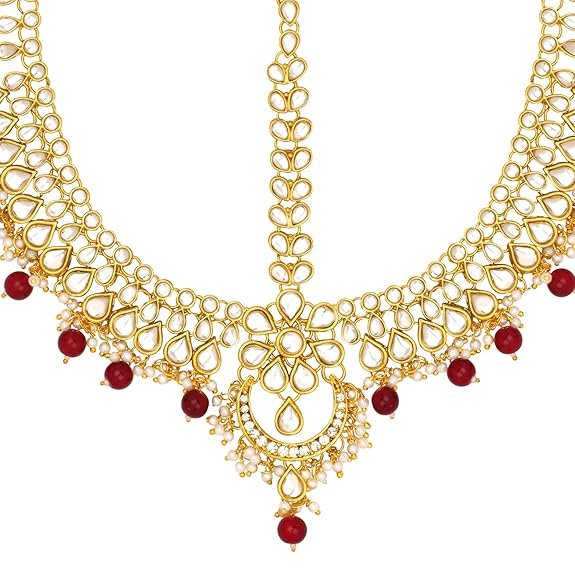 Gold Plated Kundan Pearl Maang Tikka Matha Patti Jewellery